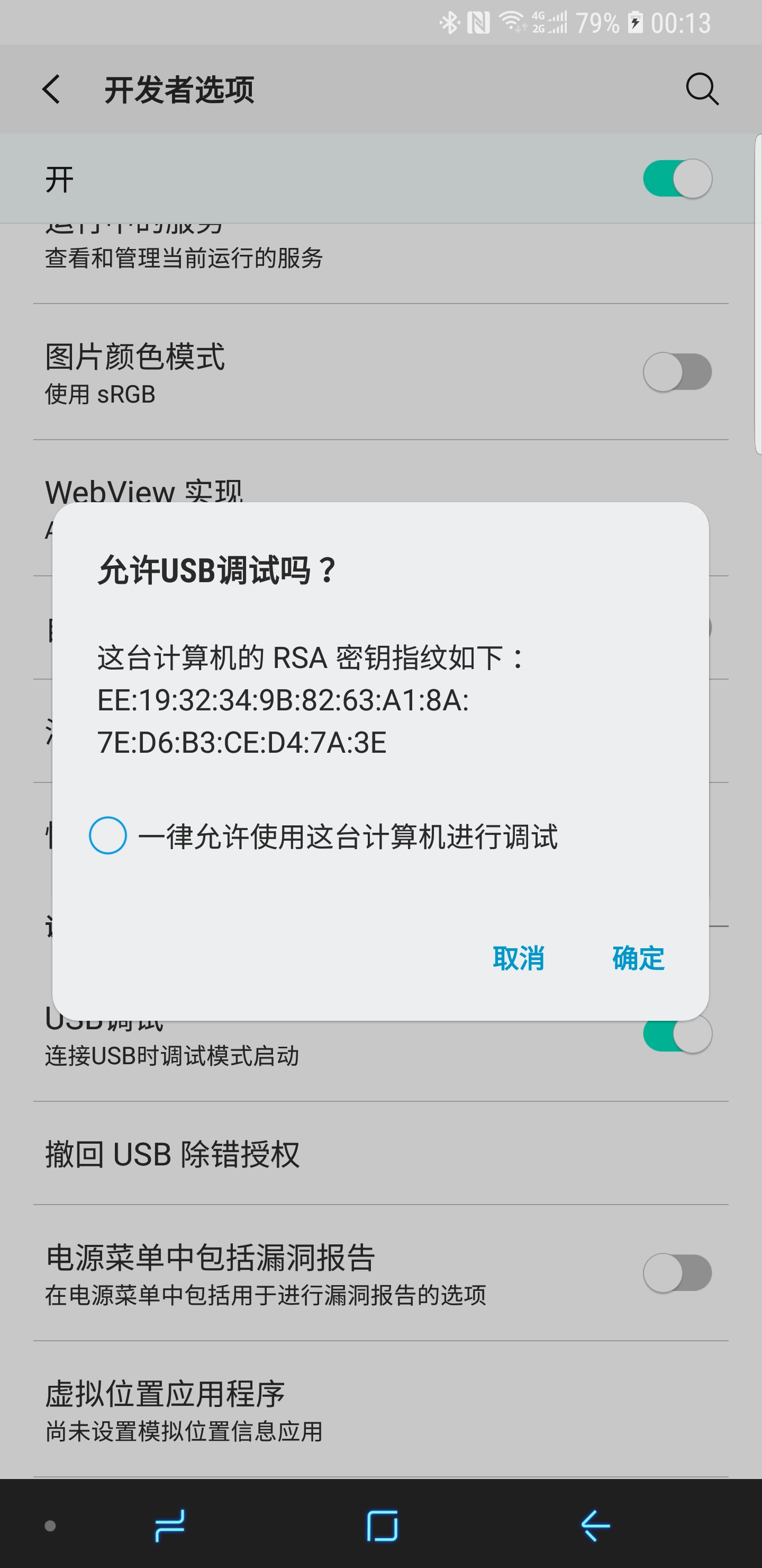 重新插拔手机,弹出窗口,提示需要授权电脑进行调试手机。