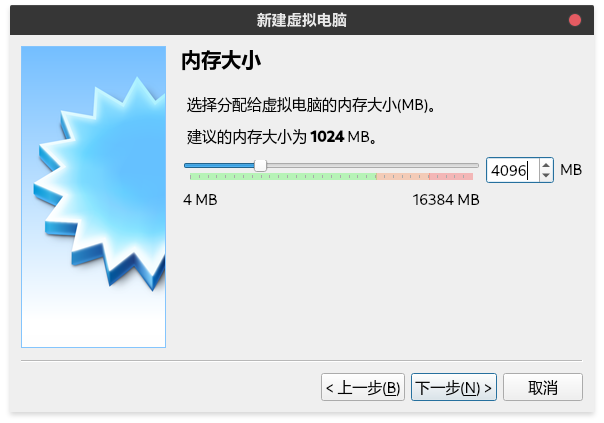 设置内存大小,根据实际内存大小分配。最少1G,建议2G。如果内存够大,请任性些。1GB=1024MB。