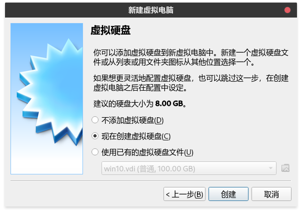 创建虚拟硬盘。
