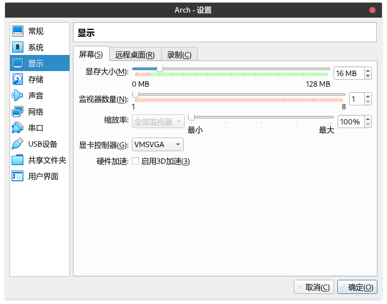 确认虚拟硬盘文件位置和大小后,创建虚拟电脑。再次打开设置。