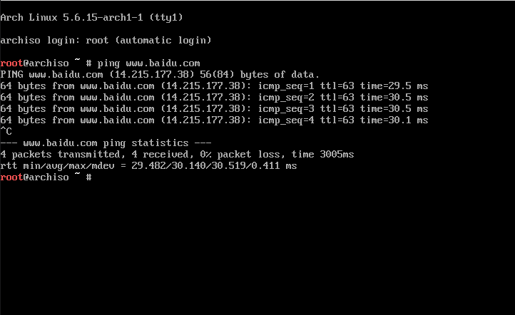 systemctl start dhcpcd # 启动 dhcp 服务pacamn -S grub # 安装 grub 引导程序
