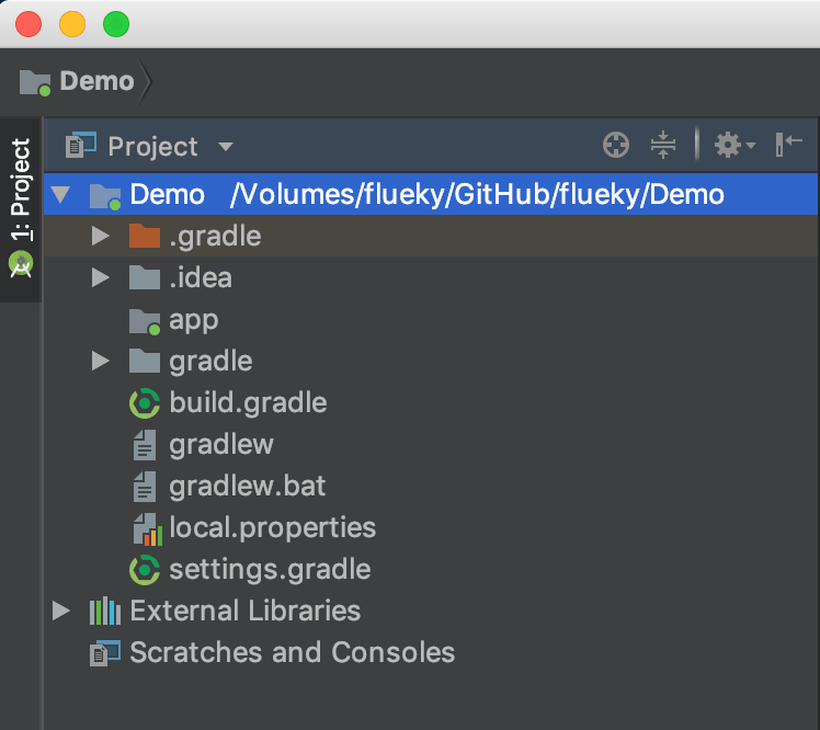 新建settings.gradle文件和app文件夹,并在settings.gradle文件中添加include ':app',再次构建工程,app文件夹图标改变。