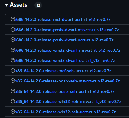 所以,做跨平台开发建议下载 x86_64-14.2.0-release-win32-seh-ucrt-rt_v12-rev0.7z,解压后,将目录添加到环境变量。