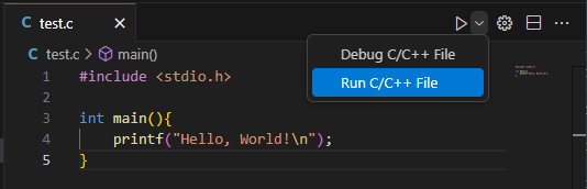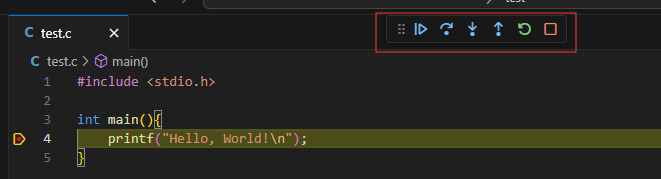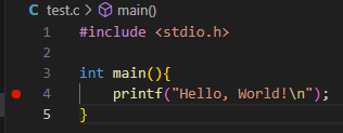 新建一个空文件夹,并用 VSCode 打开。 新建测试文件 test.c,代码内容如下