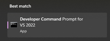 在 Windows 搜索栏中输入 Developer Command, 找到目标程序后,并打开。