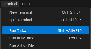 }顶部工具栏找到 Terminal选择 Run Task.