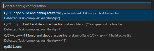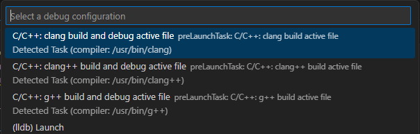 输入 c 后 选择 C/C++ 对应的 Launch 程序。